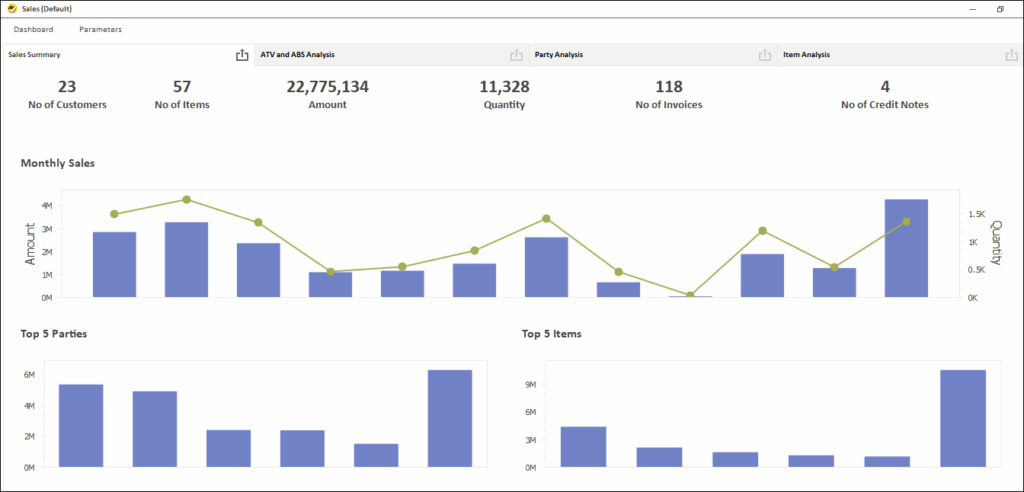 - Pre-built dashboards: AR Dashboard, AP Dashboard, Sales Dashboard, Purchase Dashboard, Cash Flow Dashboard & more